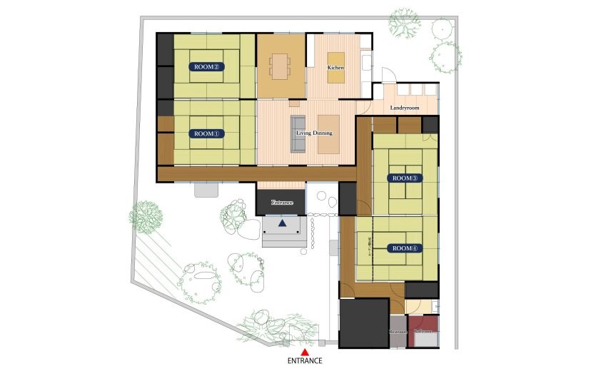 和室、リビングルーム、ダイニングルーム、キッチン、パウダールーム、洗浄機能付きトイレ、庭
