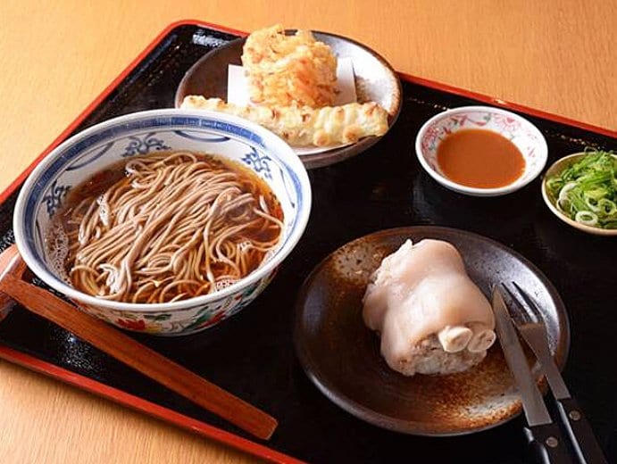 うどん、蕎麦と、豚足、鍋の移植な組み合わせが、SNSや口コミなどで人気を集め、