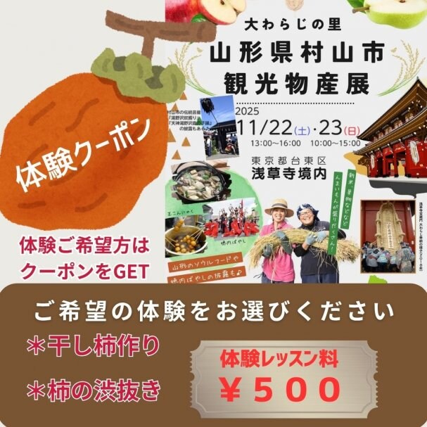 11月22日(土)23日(日)浅草寺境内・山形県村山市観光物産展 どちらか1つ選んでください。 *干し柿...