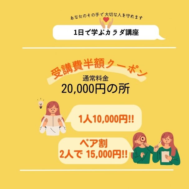 【1日カイロ教室】受講費半額クーポン