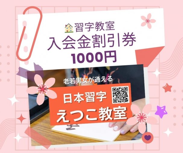 習字教室・ペン字教室に入会した初回にでる 入会金を1000円割引します
