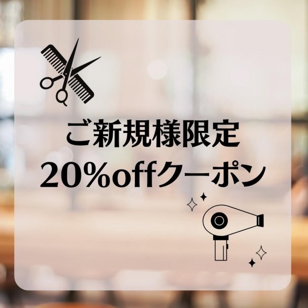 ご新規様限定でお会計の合計から20%OFFさせていただきます。 お友達や家族みんなで一緒に利用するこ...