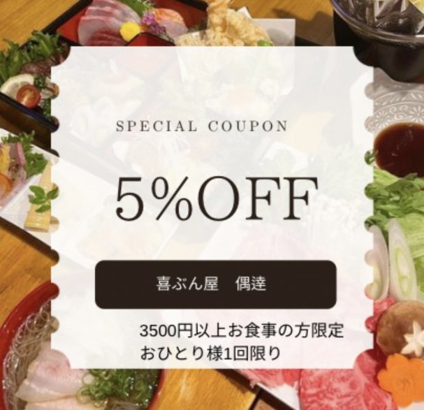 喜ぶん屋 偶逹 5%OFF【3500円以上のお客様限定】クーポン