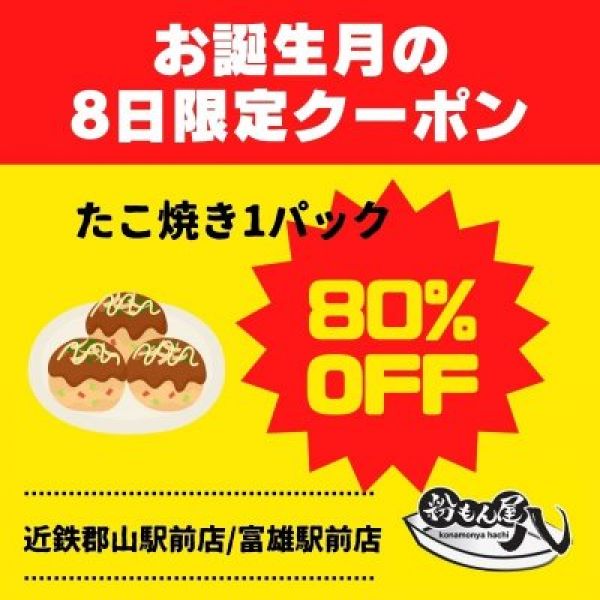 お誕生月の8日限定【80%OFF】クーポン