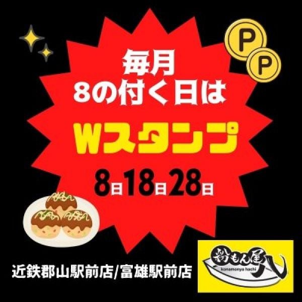 毎月8のつく日はWスタンプクーポン