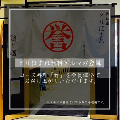 とりほまれ会員様【毎回特典】はこちら→ご来店のたびにコース料理竹10000円を会員価格8800円でご提供さ...