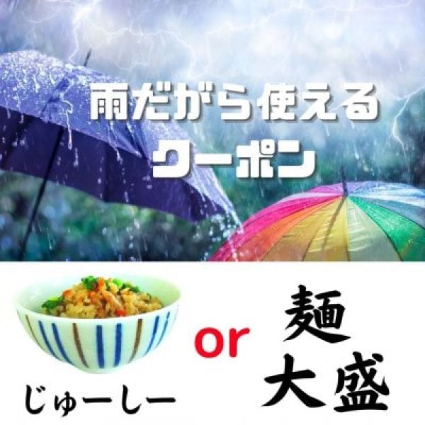 【無制限】雨だから使えるクーポン♪