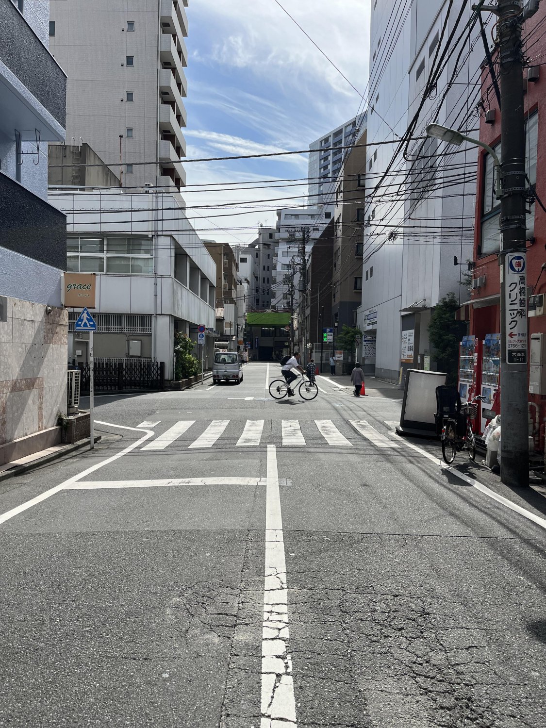 2つ目の角を右方向へ曲がる(目印は写真右側のファミリーマート)