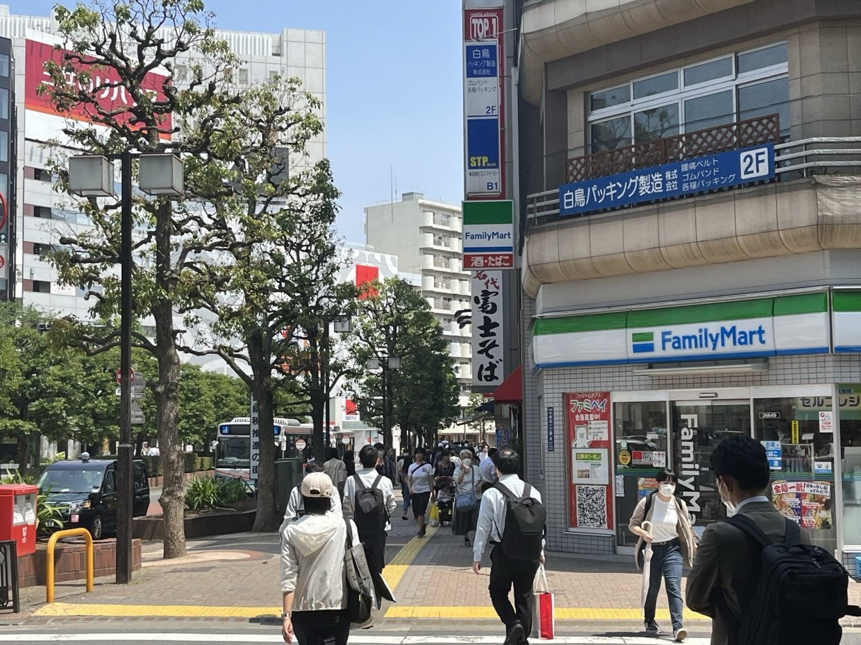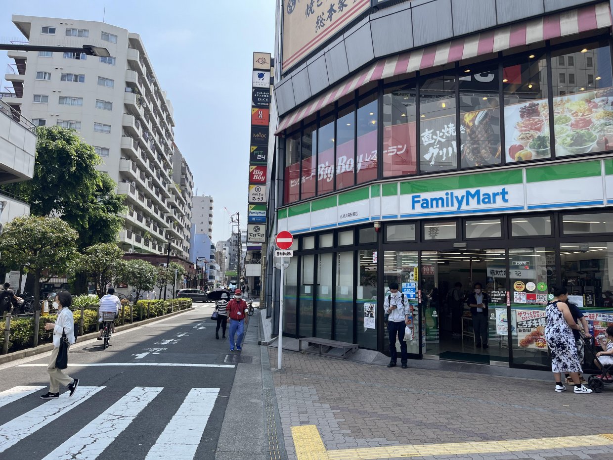 2つ目の角を右方向へ曲がる(目印は写真右側のファミリーマート)