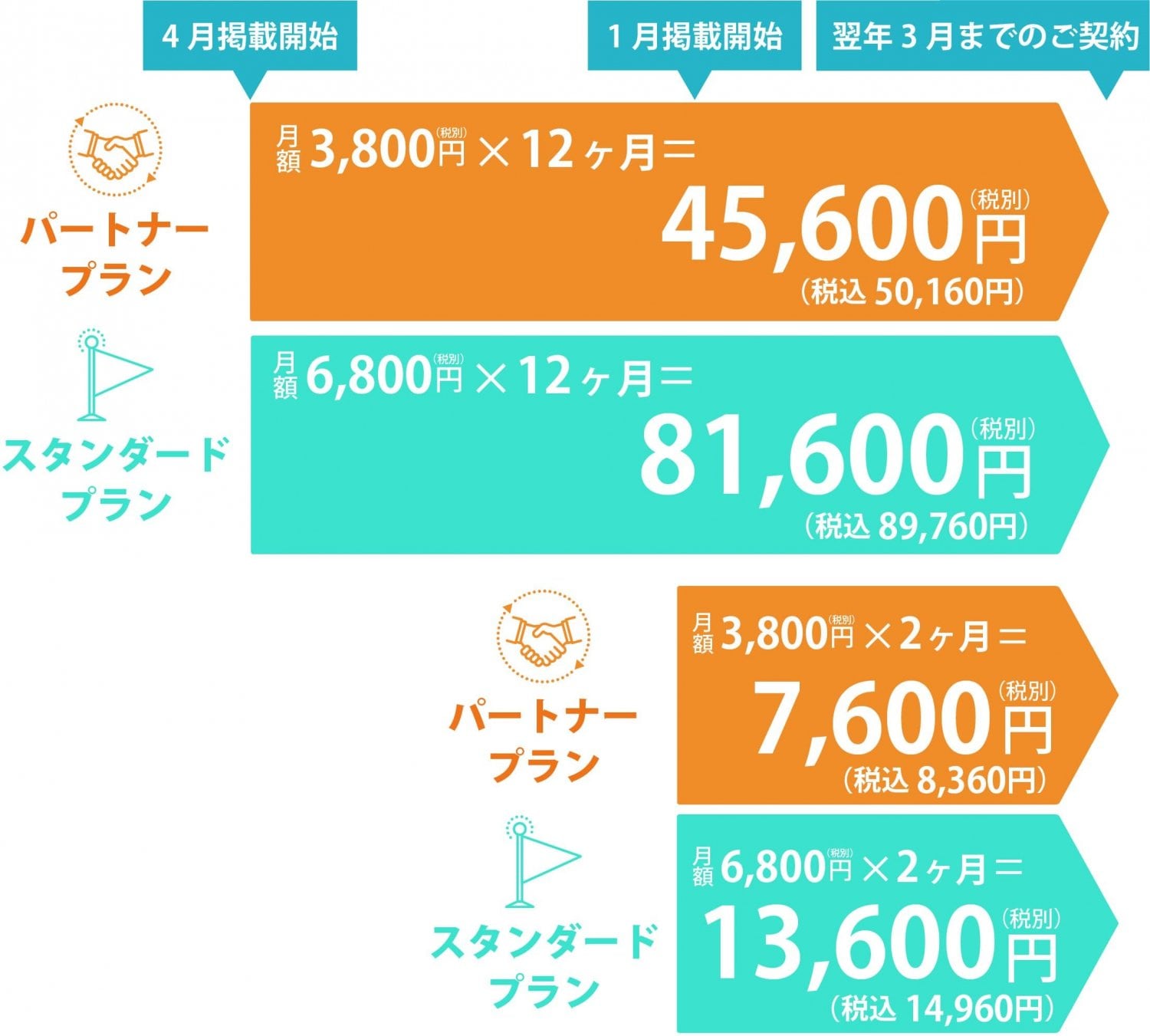 掲載のご契約は、掲載開始月~次の3月までのサブスク契約となります。