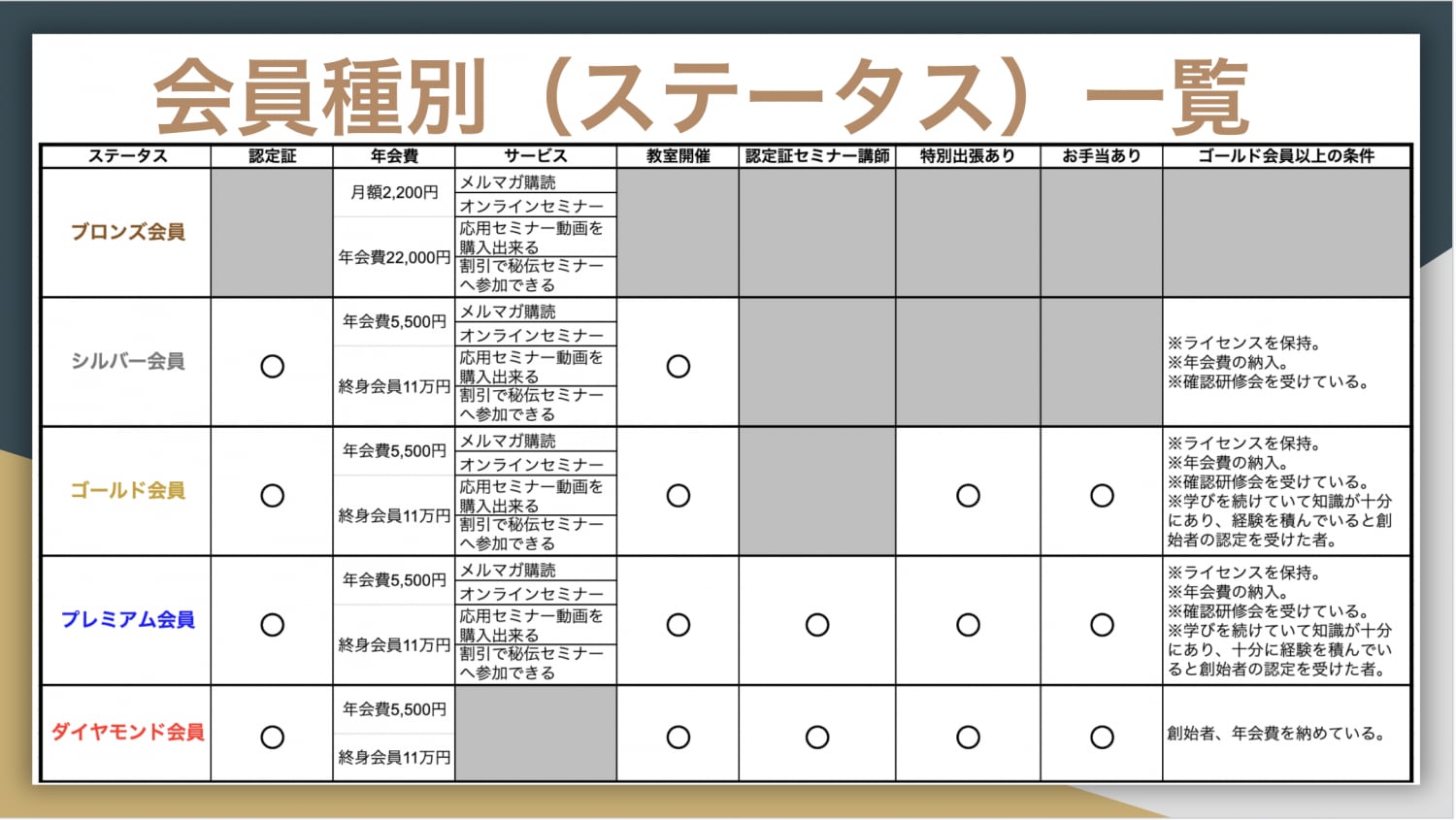 ④プレミアム会員(ライセンスを保持しており、縦巻き横巻き理論教室を開催出来る会員、知識が十分にあり、セミナーで学び続けて経験を十分にを積んでいる、現在2名)