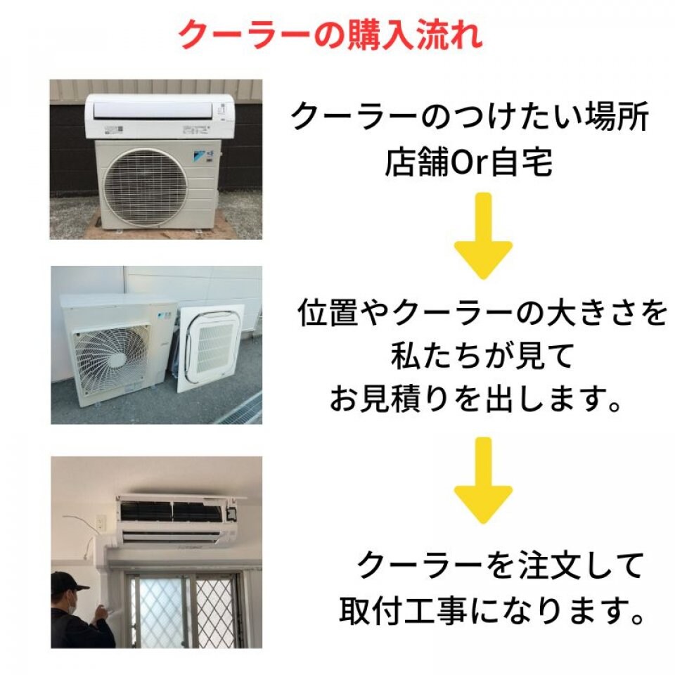 現場に行き、クーラーの大きさや設置場所を確認しお見積りとなります。