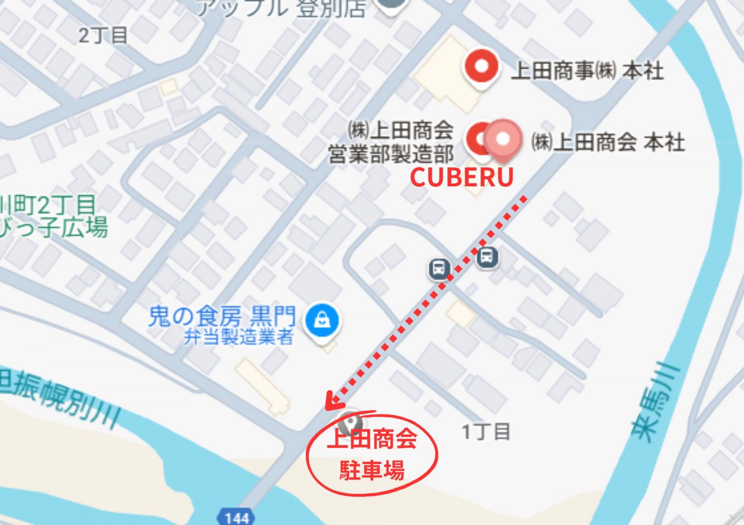 搬入後、画像に記しております上田商会様従業員駐車場へのお車のご移動をお願いいたします。