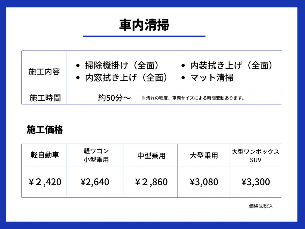 日常的に使用するお車は1週間もすると、車内にホコリが溜まりはじめ、足元には砂などの汚れが出始めてきます。汚れを放置していると車内は少しずつ劣化していき、汚れやホコリがどんどん蓄積されてしまうため、車内清掃は定期的に行っていくことが大切です。しかし、なかなか車内清掃まで手が回らないことが多いのでは?と思います。そんな車内清掃を定期的にプロにお任せし「清潔」を保つことも手段の一つと考えます。毎日使用する愛車を綺麗に保つために車内清掃をオート加賀にお任せください。車内を綺麗に保ち、快適なカーライフをお楽しみください。