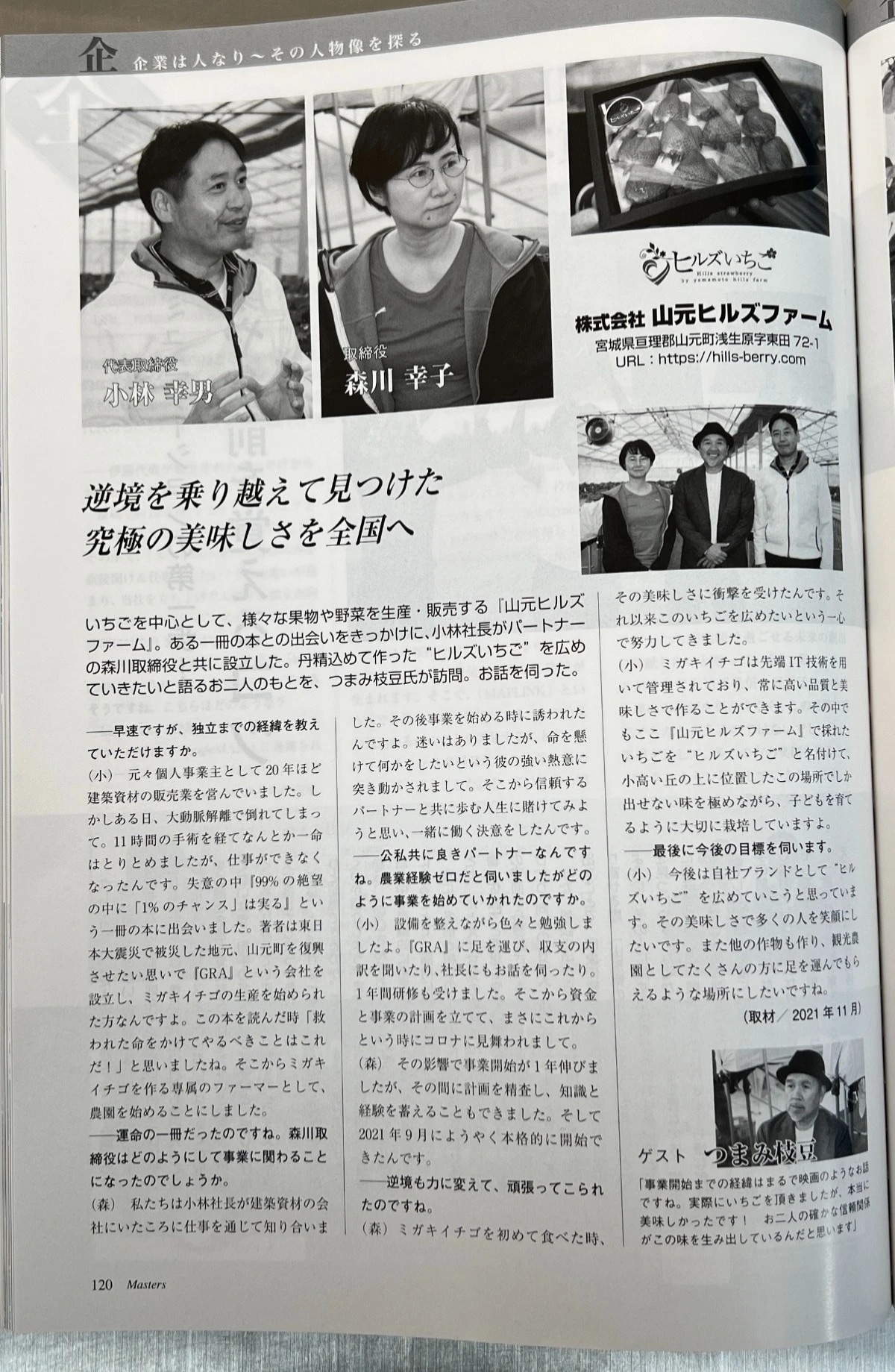 インタビュアー「つまみ枝豆」氏により山元ヒルズファーム創業までの道のりなどを取材していただき、「月間マスターズ2022年2月号」に記事が掲載されています!是非、ご購読の程、よろしくお願いいたします!