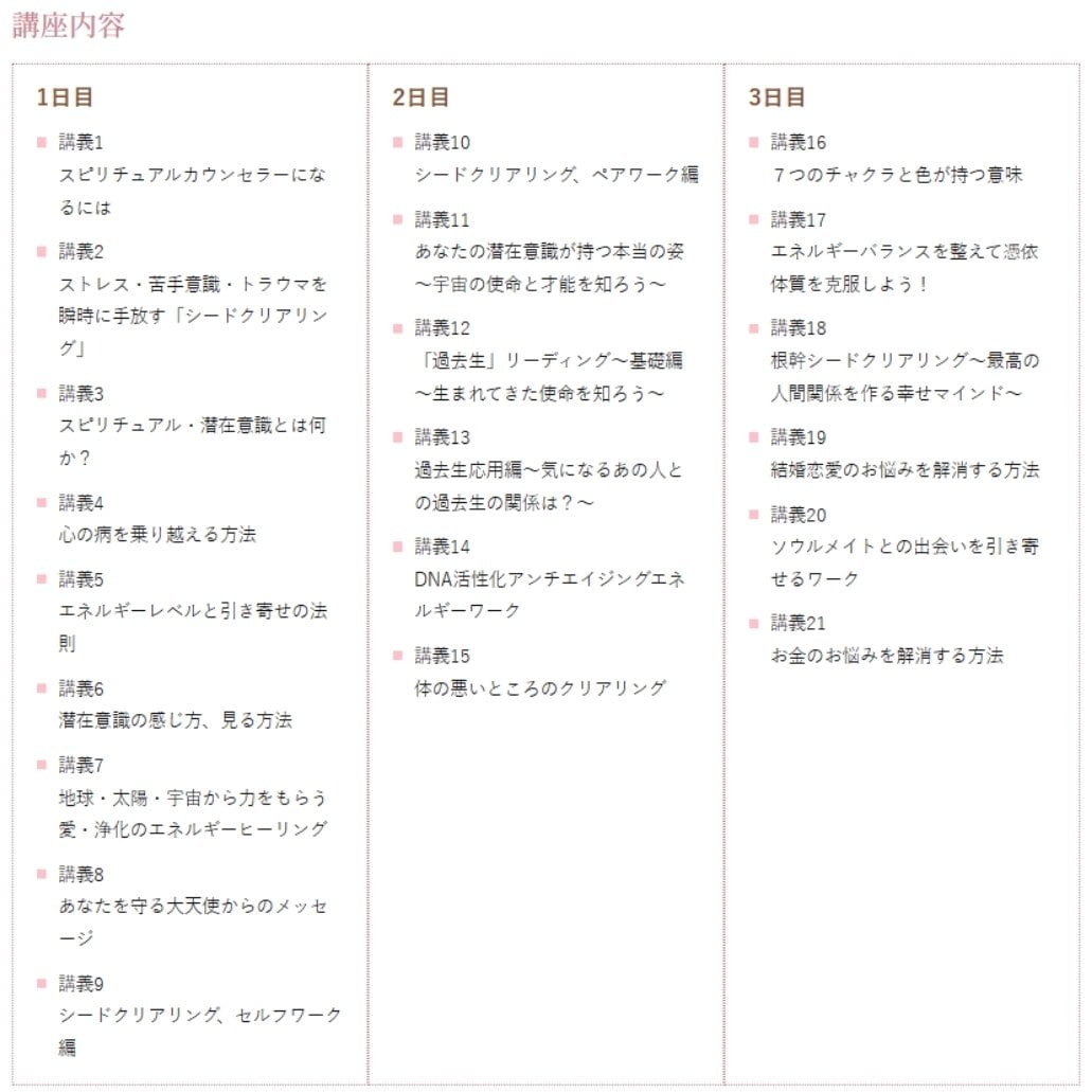 大天使にメッセージをもらったり、自分の過去生を見に行ったり、DNA活性化アンチエイジングエネルギーワークで若返ったりなど、初級から楽しいワークが盛りだくさんとなっています。