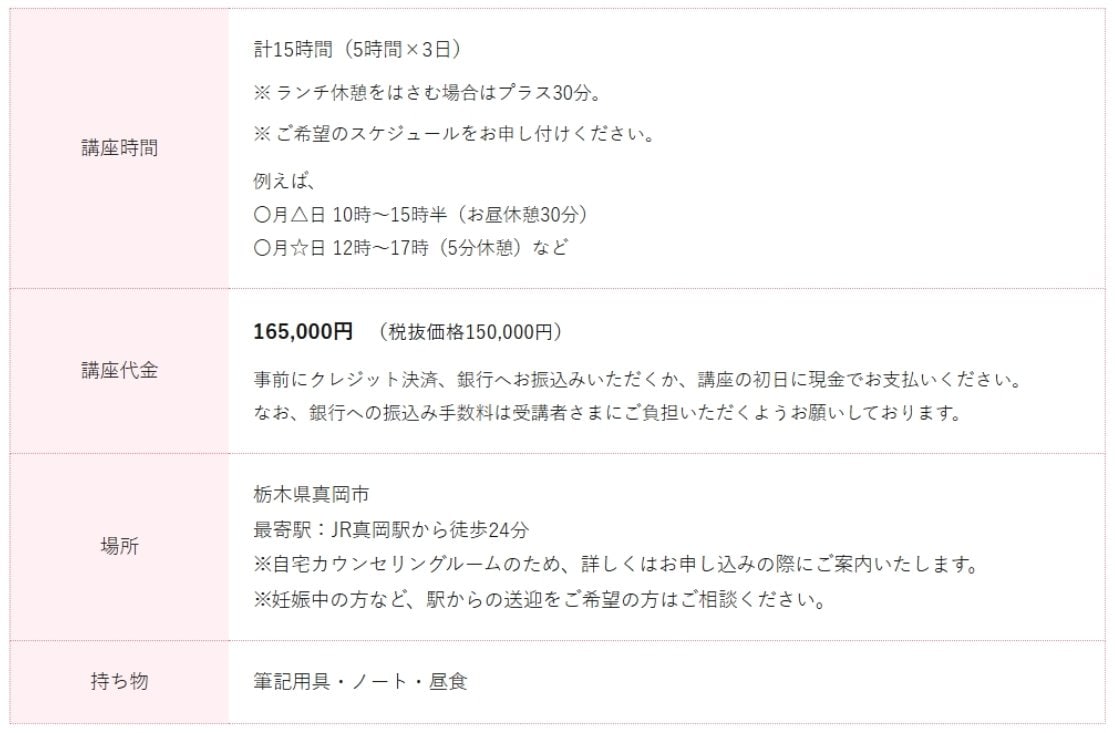 テキストの内容をおさらいしたい方は、リリーアルバの初級講座開講動画を視聴することができます。初級講座卒業生のページの閲覧が可能になります。
