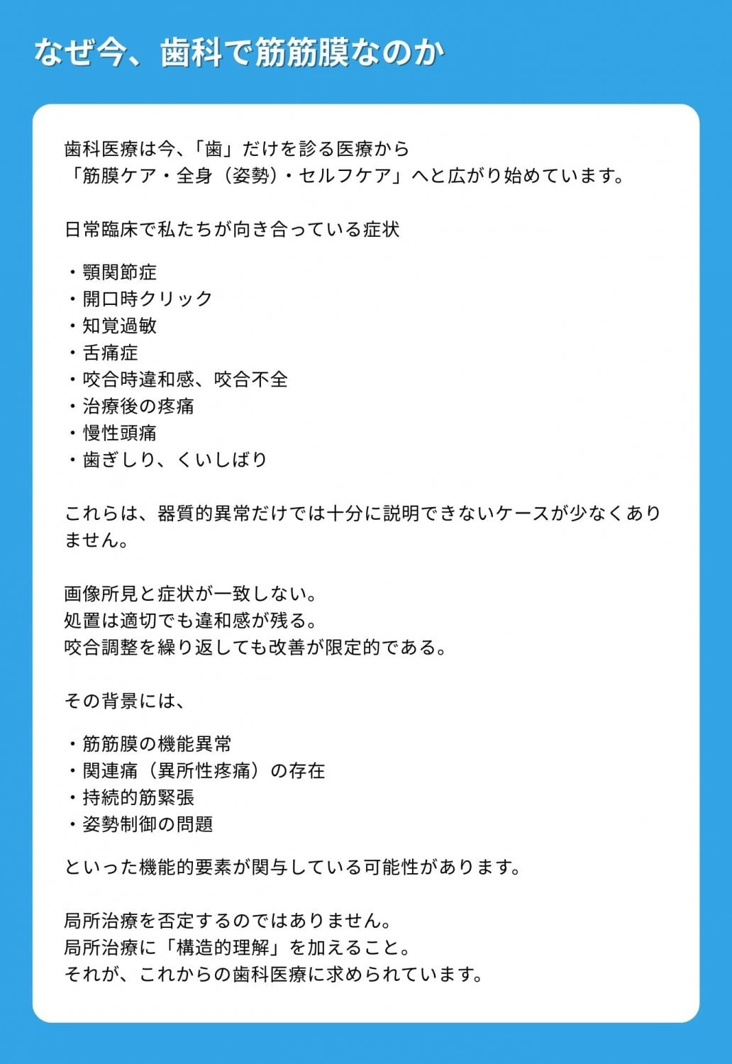 理論を理解した上で実技に進むことで、臨床の再現性が高まります。