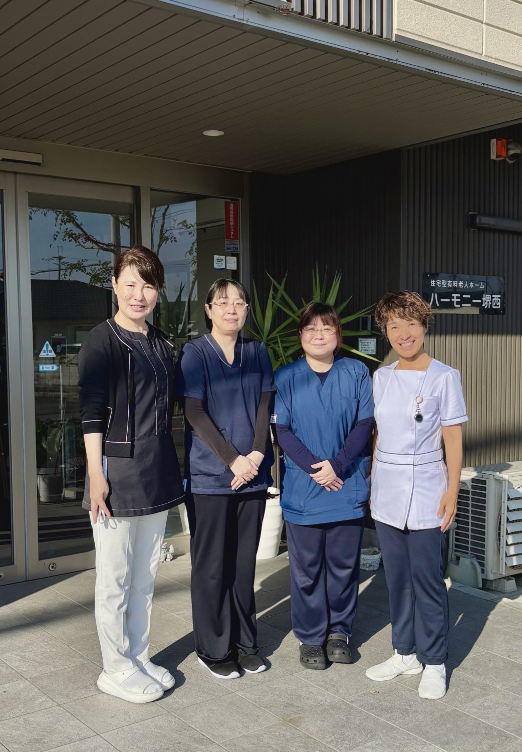 〒593-8316 大阪府堺市西区山田2-189-8 ハーモニー堺西内 介護保険事業者番号:2766390336