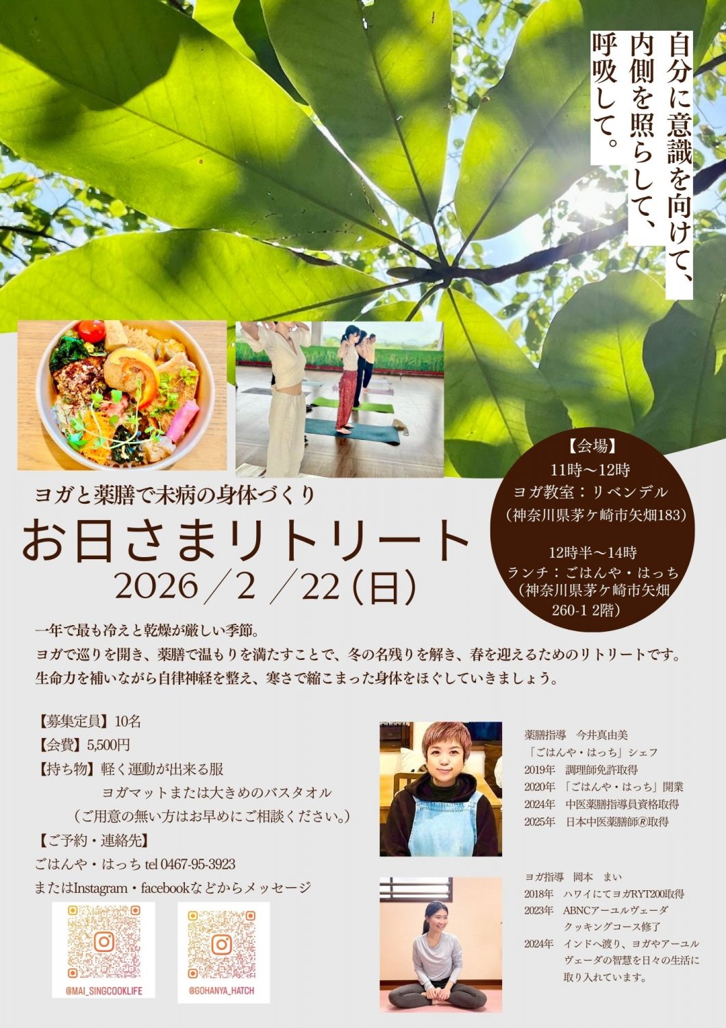 茅ケ崎にある薬膳料理のお店、ごはんや・はっちさんと一緒にヨガと薬膳ランチのリトリートを開催致します。