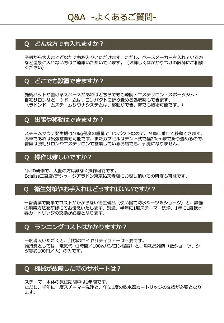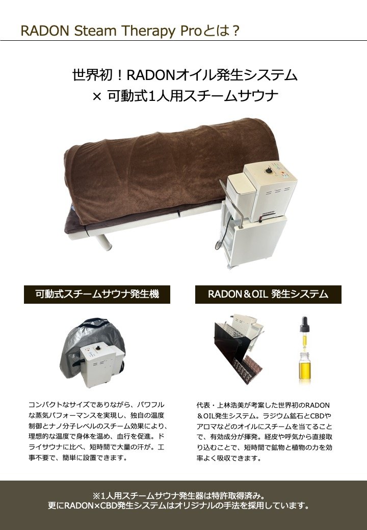 難しい技術などは特になく、正しい知識と施術方法を習得すれば、どなたでもRADON steam therapy proを導入することが可能です。