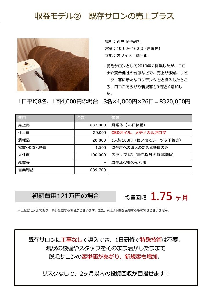 ・しっかりとした売上や利益率を見込める(詳細は導入研修でお伝えします。など多岐にわたります。)