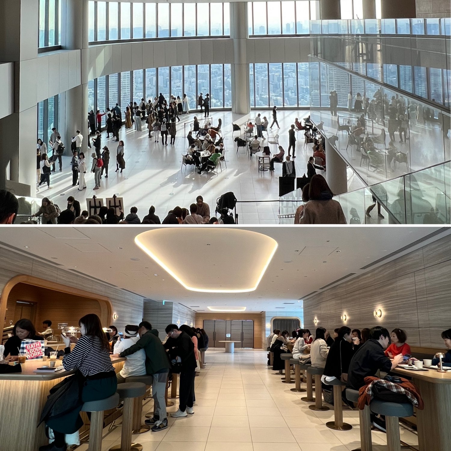 33階展望台には無料で登ることができ、ヒルズクラブのメンバーでなくても最高の景色と共に、カジュアルにティータイムが楽しめるカフェが人気です。