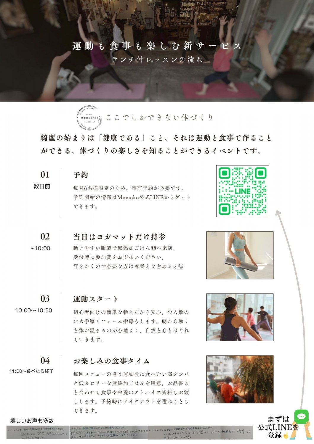 やさしいエクササイズ&無添加ランチのセットイベントなので初めての方も安心してください♡