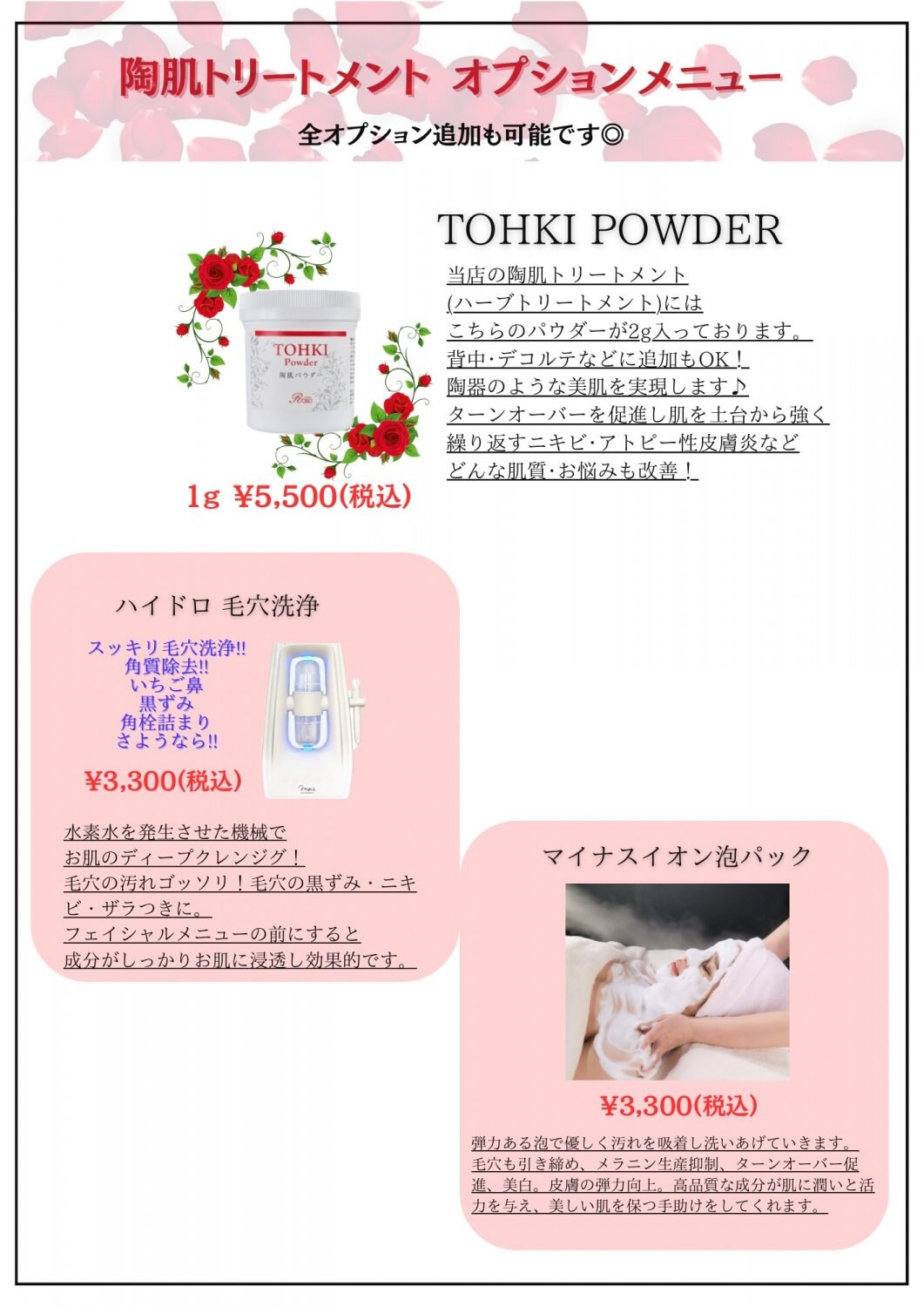 植物幹細胞成分や天然植物由来の植物エキスを、施術しながらお肌に送り込み、ご自身のお肌本来が持っている力を活性化させ、美しいお肌へ生まれ変わらせるトリートメントです。