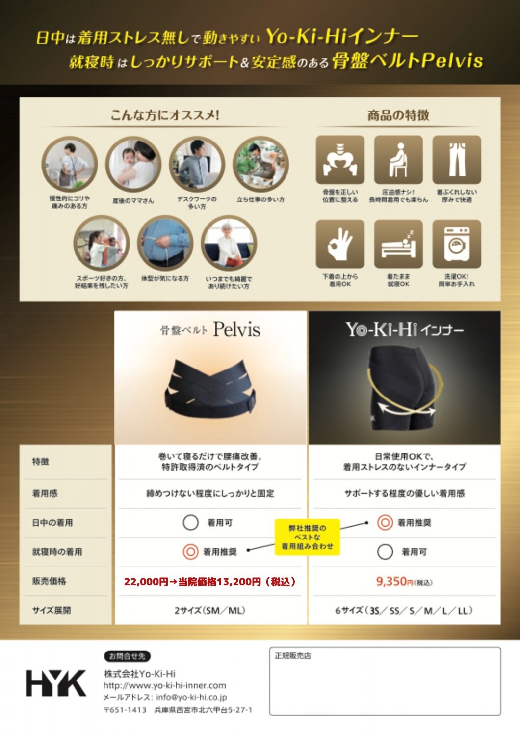 寝る時に着用し、寝ている間にその日にかかった骨盤の負担(反り)を改善します。