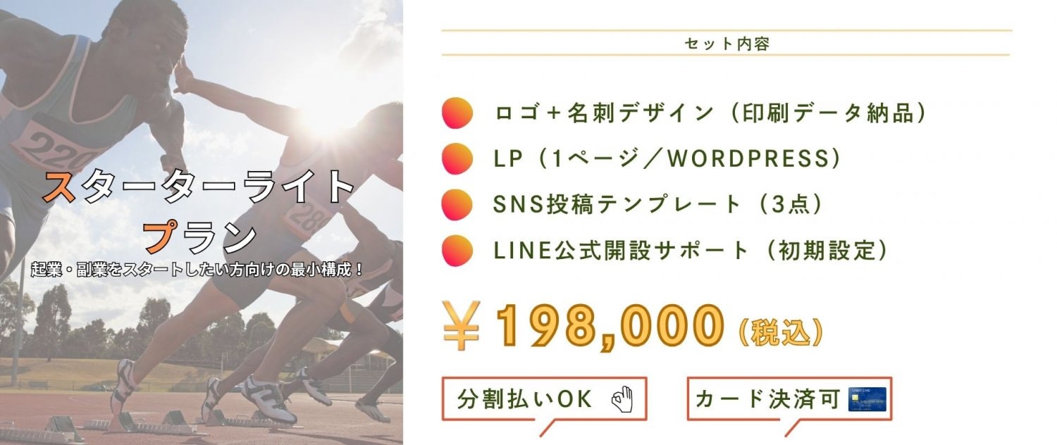 名刺・LINE・LPまで“必要なものだけ”をしっかり整えるお手軽プラン。