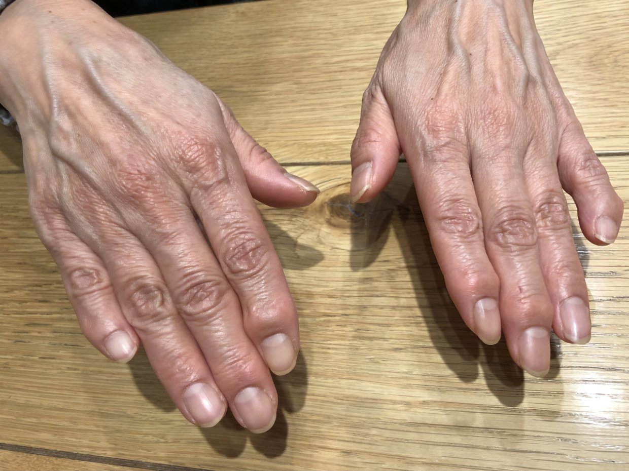 第1関節部分が赤く腫れたり、曲がってきてしまう方もいます。