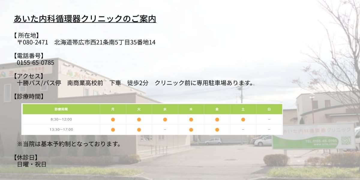 社会的処方を実現する拠点として、2024年に北海道帯広市で「あいた内科循環器クリニック」を開業しました。