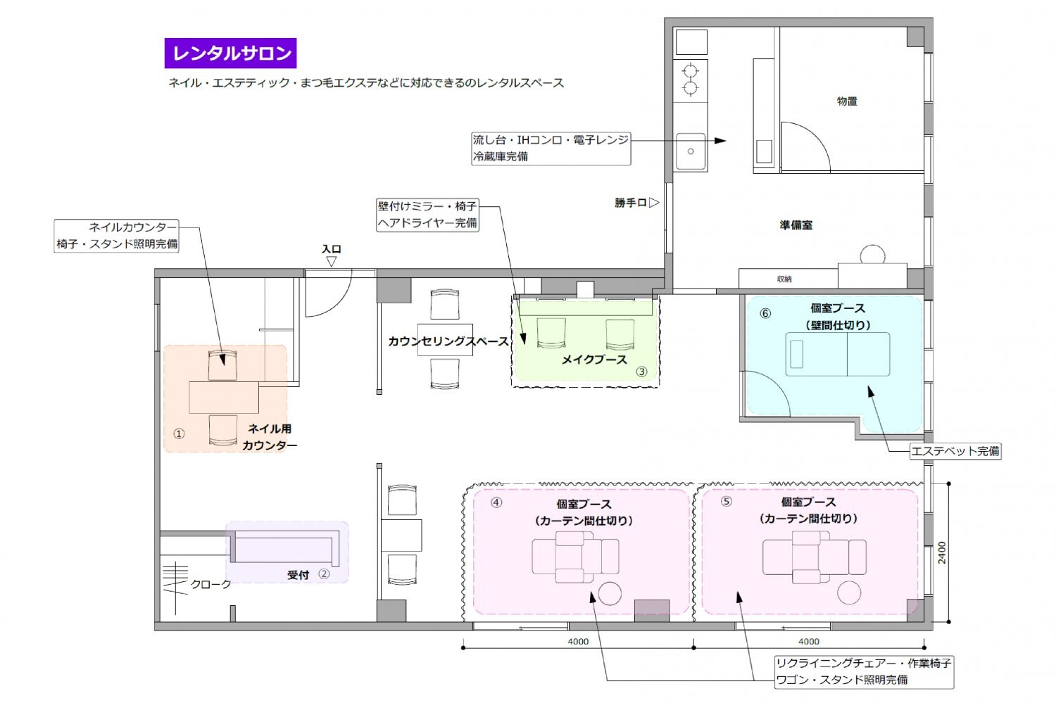 ネイル・エステティック・まつ毛エクステなどの施術に対応できます。