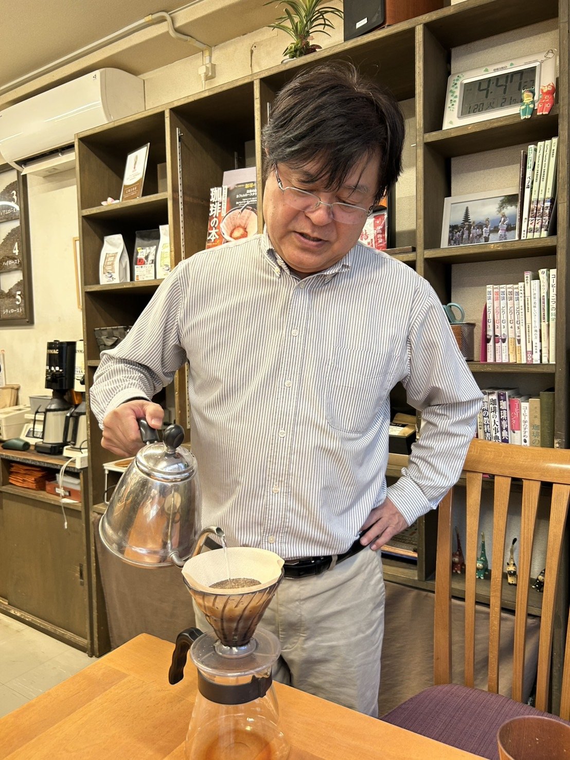 どうぞお気軽に、コーヒーをご注文ください。オーナー福永 高