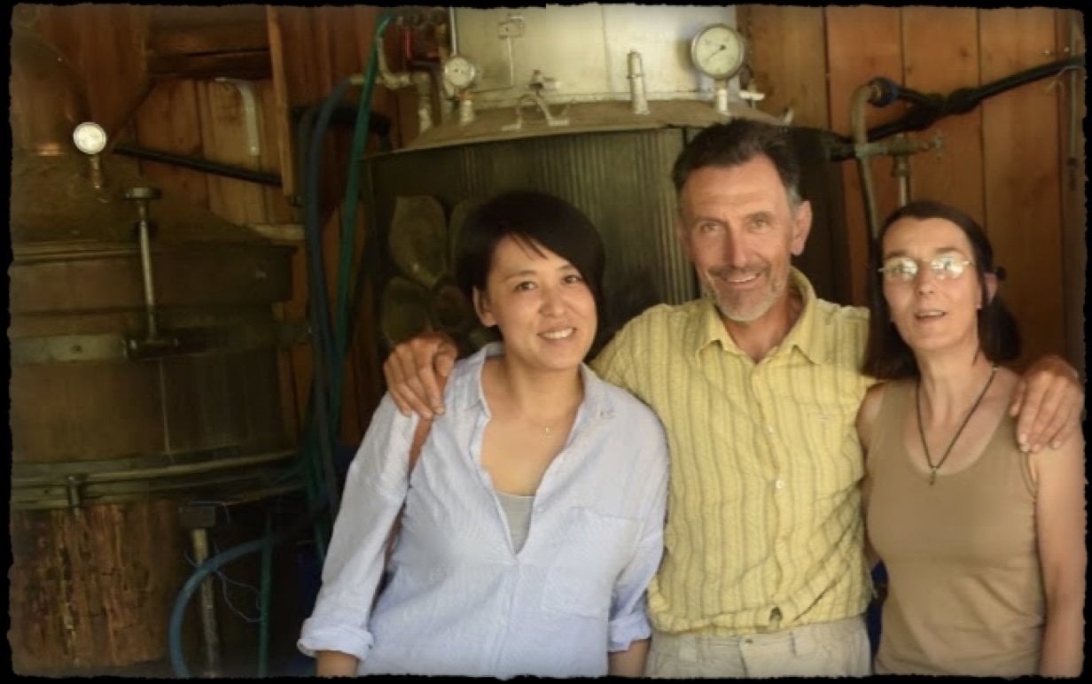 オーナーの石田は日本でアロマセラピストの資格を取得後、エッセンシャルオイルの原料となる植物をこの目で見て感じて、そして自分の納得のいく精油を自分で作るという夢を抱いてフランスに渡りました。ルソーご夫妻のところを尋ねた理由は、彼らが家族単位という小規模農家で原料から蒸留、製品化にいたるまで、全ての行程を自分達で行っていたからです。自分でいつか精油と蒸留水を生産できるようになり、彼らの様な6次産業化を目指すべく、フランスへ渡ったオーナーを、ルソーさんご夫妻は研修生として快く受け入れてくださったそうです。