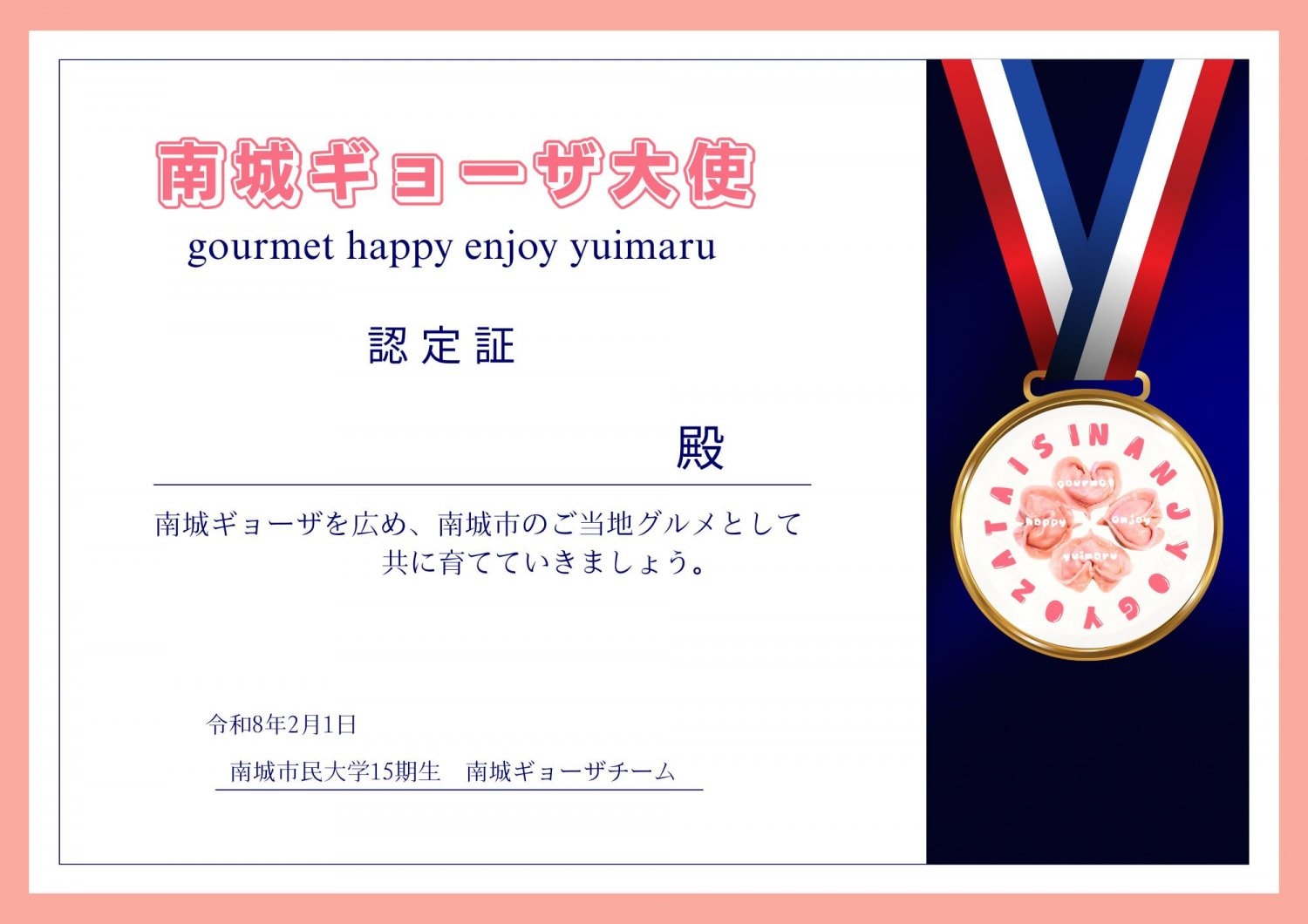2月1日プロジェクト始動!「南城ギョーザ大使」認定講座