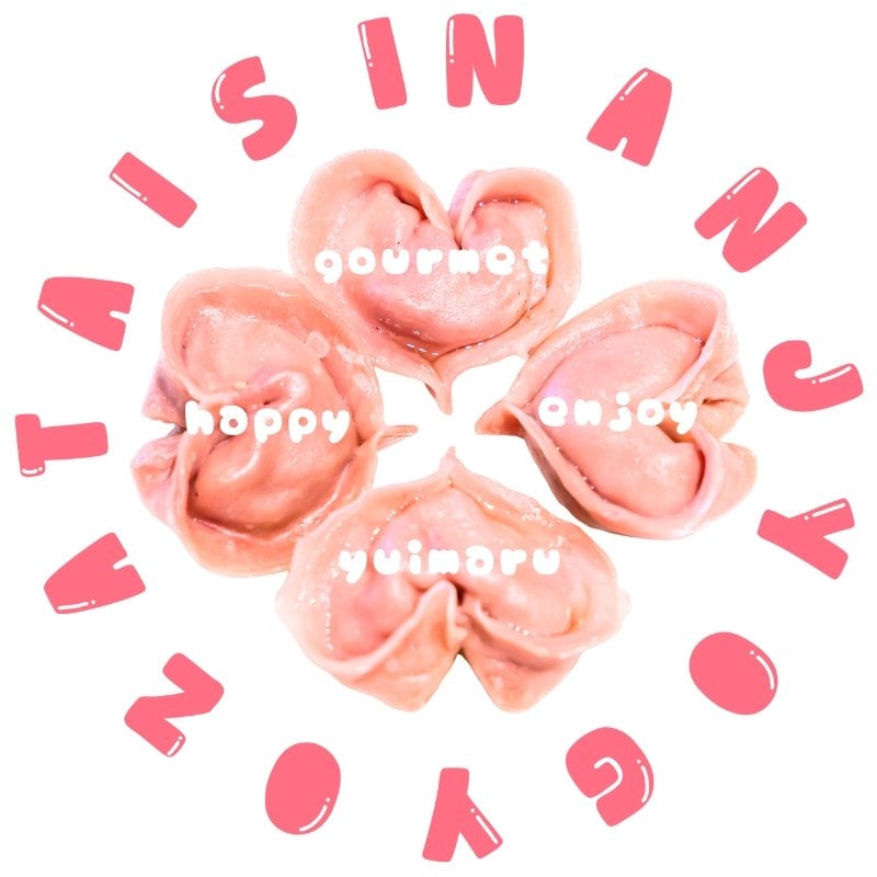 ハートの形の餃子 色はピンク(将来的にはもっと増やしたい)中の餡は島野菜中心