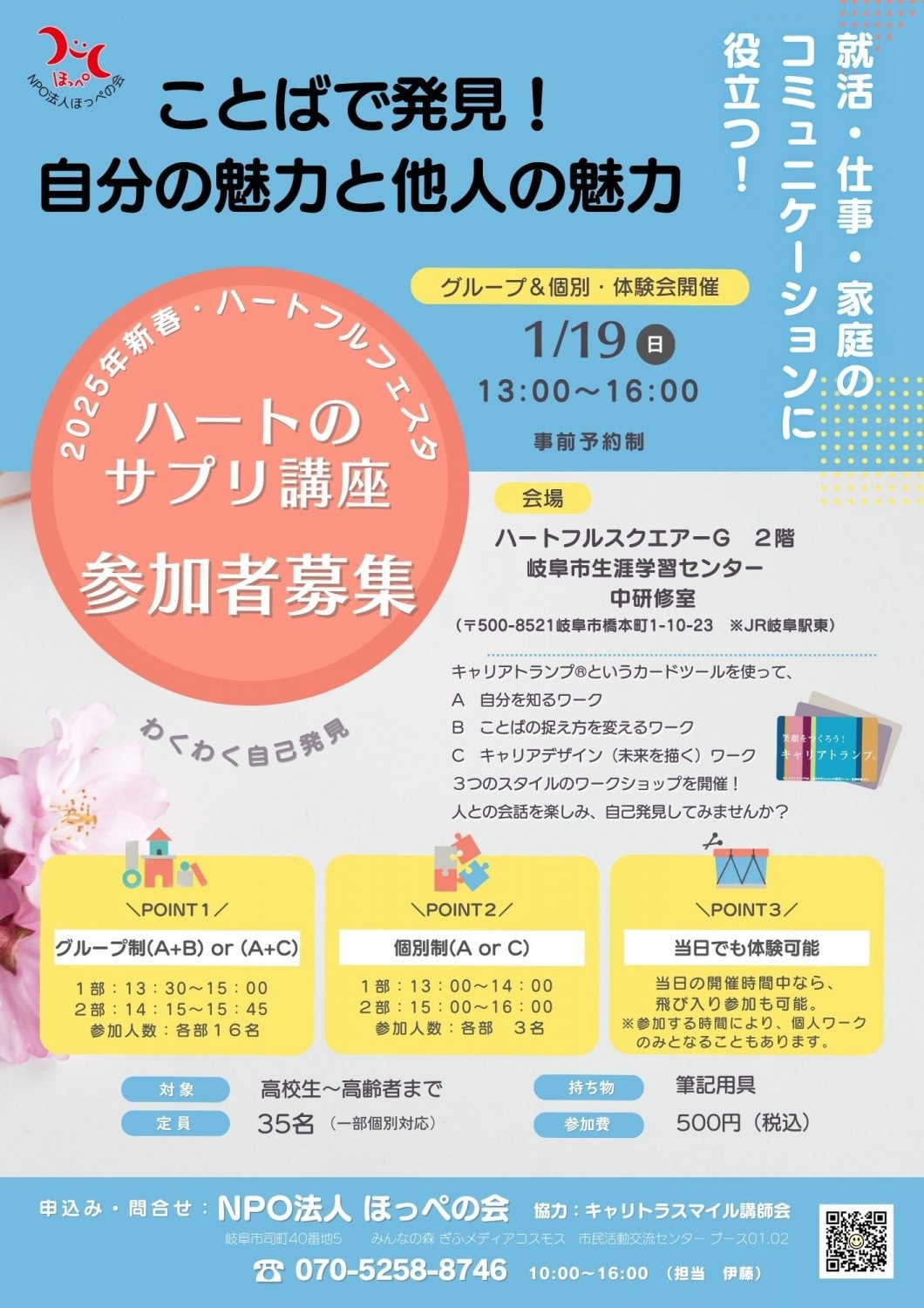 「ハートのサプリ体験講座」が岐阜で開催!