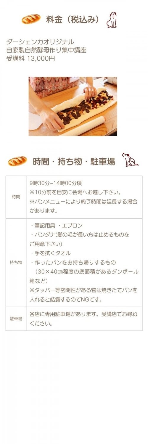 ・ご家庭での自然酵母パン作りに生かせる知識・技術が確実に身につきます。
