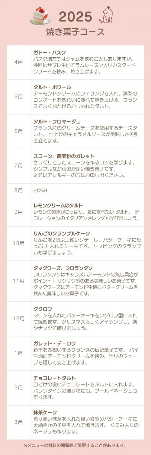 焼き菓子コースメニュー