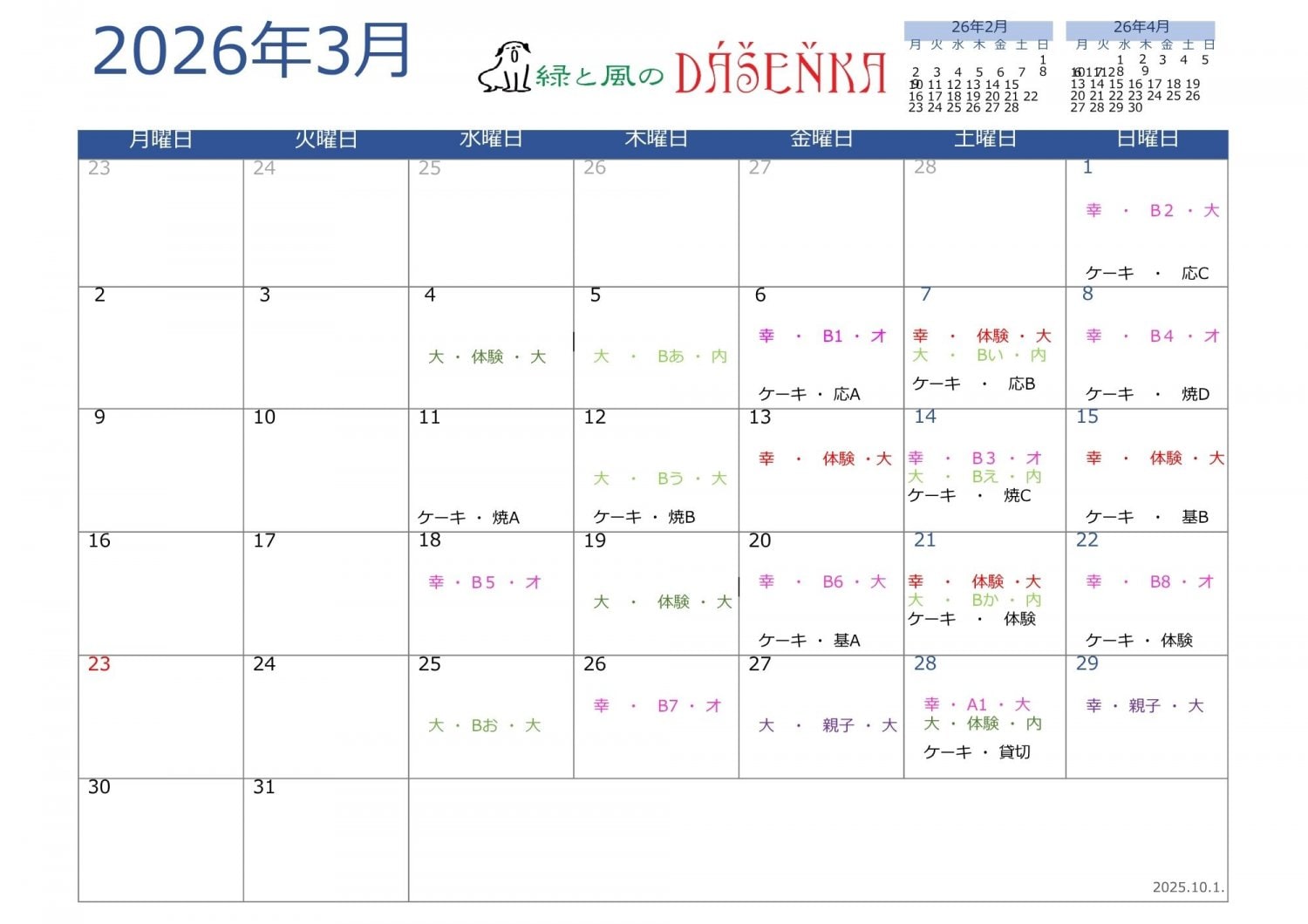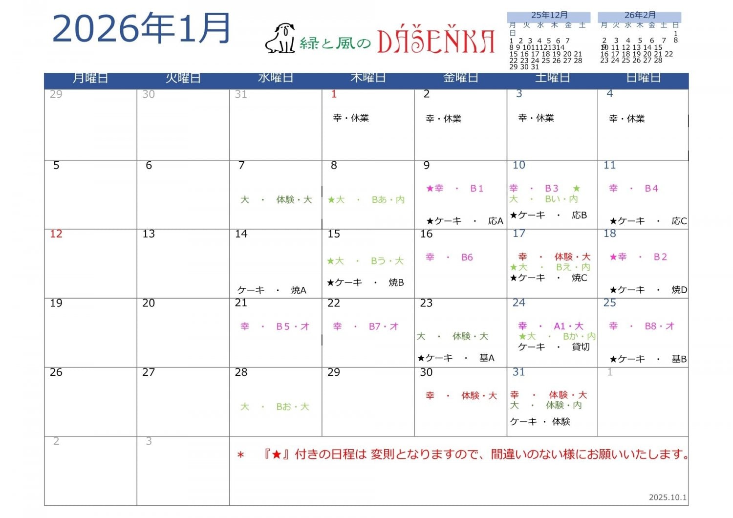A1、B1などのA,Bのアルファベットはパン教室のコース名です。A1の場合はパン教室Aコースグループ1を指します
