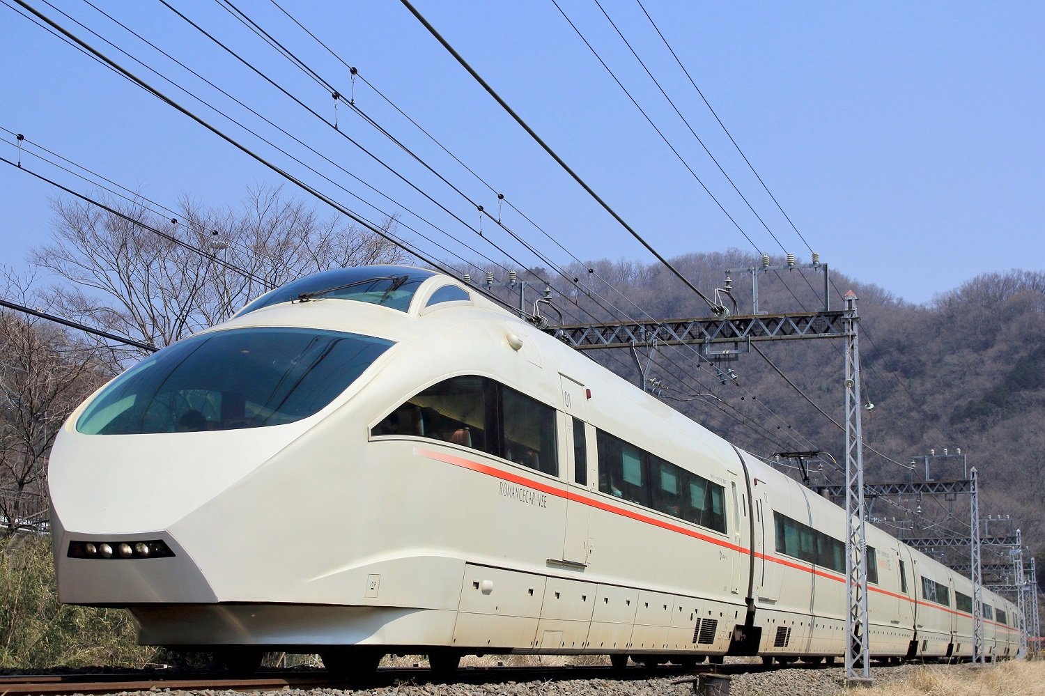 ▼ 何でもない日常の風景に、当たり前のように存在していた白いロマンスカー。10両編成の美しい流体が、風景を縁取りながら走行するその姿に惹かれ、筆者も熱心にVSEを撮影していた1人です。猛暑の中、雨の中、雪の中、強風の中、川の中、思い返せばどんなコンディションであっても、懲りずに撮影していたものです。