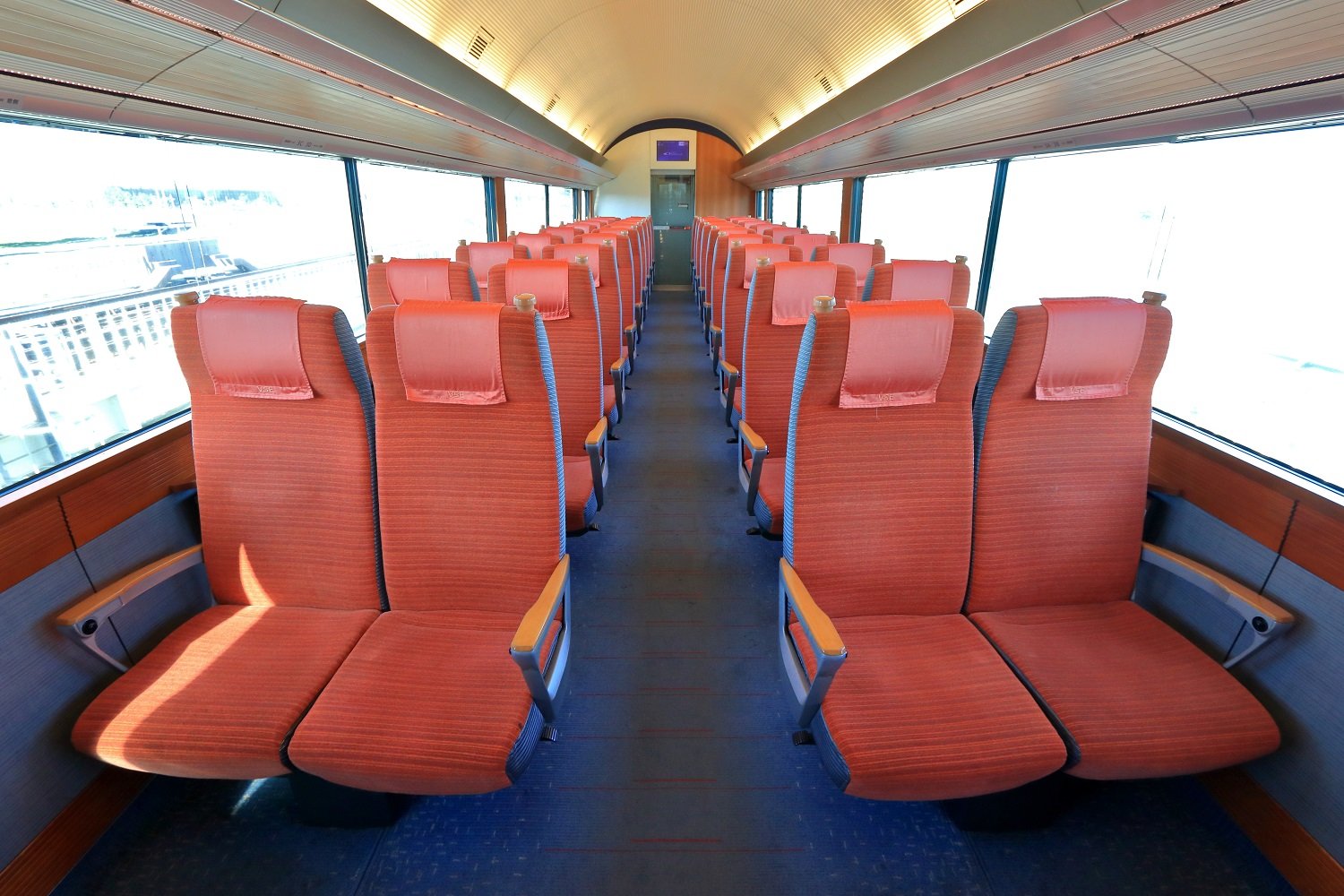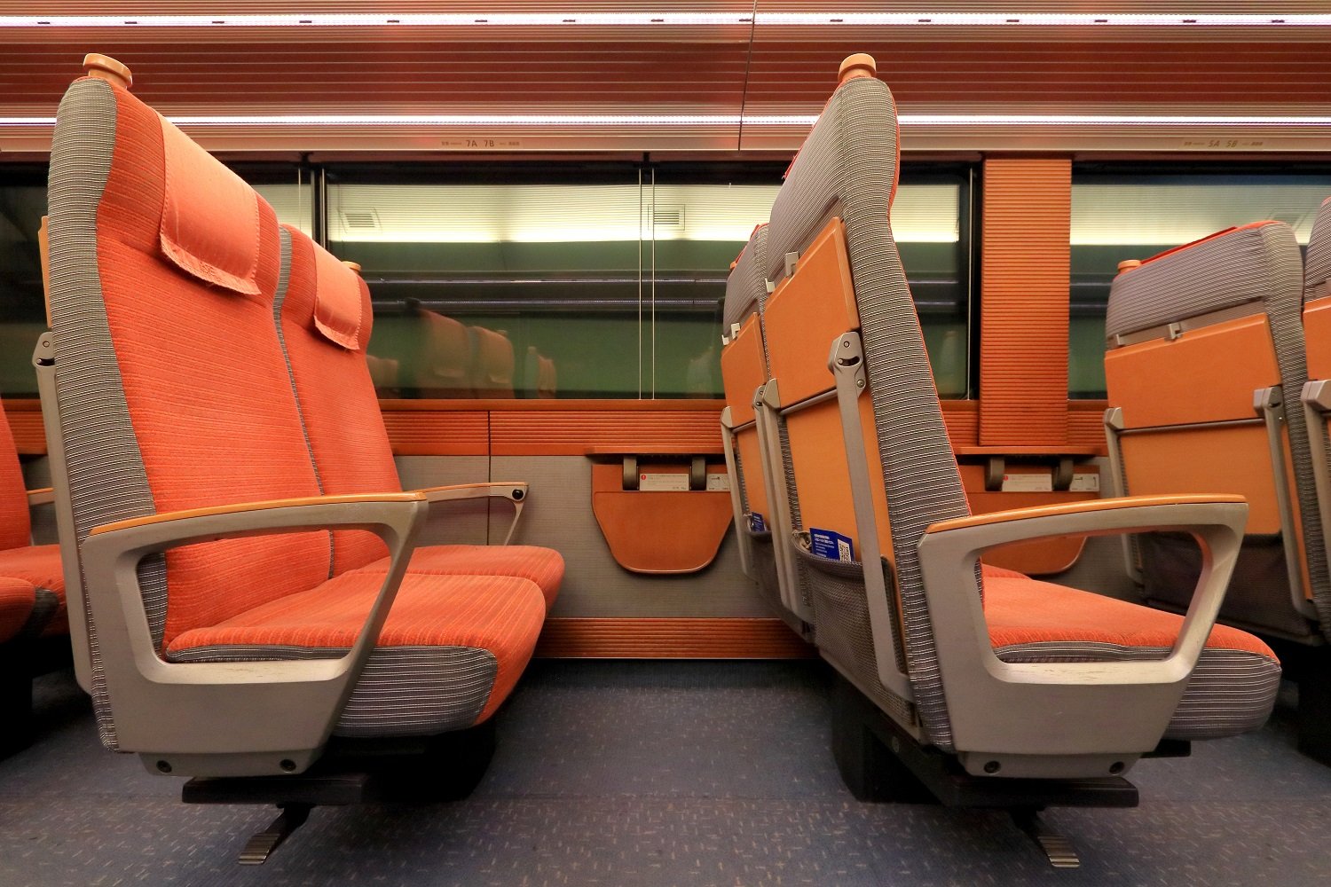 ▼ モノクラス編成でありながら、客室はカーペット敷きを基本としている点も嬉しい要素です。客室内の静粛性アップはもとより、歩行した際に靴底を伝う柔らかさも、上質な空間の演出にさり気なく貢献しています。日々のメンテナンスもきっと手間を要したことと思いますが、最後まで美しく保たれていた点に好感を持ちました。