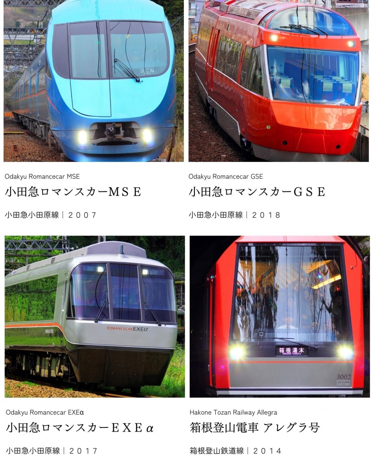 ▼ ロマンスカーVSEの成功を皮切りに、岡部憲明アーキテクチャーネットワークは、2018年までの約15年間にわたり、多くの鉄道車両を世に生み出すことになりました。代表作であるロマンスカーラインナップでは、歴代の車両が培ってきた伝統・技術を大切に、端正なデザインで後世へ繋いでいく試みを感じ取れます。