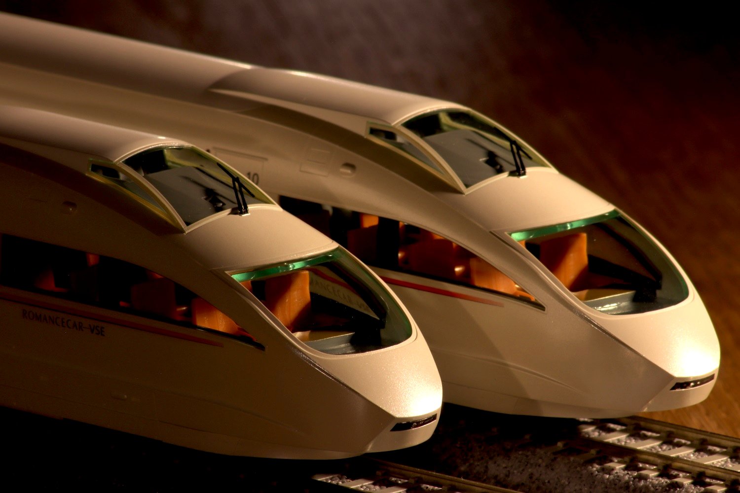 ▼ こうした建築家チームのさり気ない仕掛けは、筆者に「どの角度から撮影すると格好良く撮れるのだろう?」という嬉しい悩みを与えてくれました。それでは実際に、光線の入射角や色温度の違いで、先頭形状がどのように見えるのか、縮小モデル(HOゲージ:1/80モデル)で撮影した例をご覧ください。