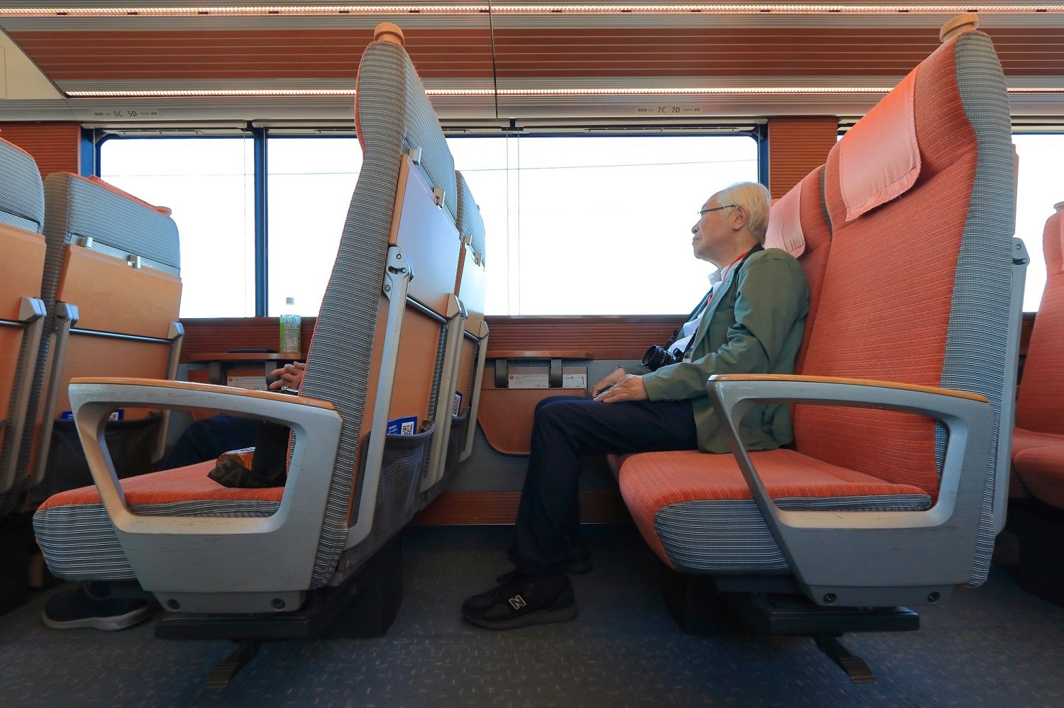 ▼ 座席も設計当初から並行して検討が進められました。クッションはできる限り薄く、脚台も浮かせて見せる等、空間を圧迫しないようにと、軽快なシルエットが追究されています。肘掛けのボタンを押すことで、リクライニング動作が行えますが、アンクルチルトリクライニングという、事務用チェアのリクライニング機構が取り入れられている点が特筆されます。モケット色については、昭和のロマンスカーラインナップで見られたカラーリングを模したのでしょうか。昭和生まれの筆者には、どこか懐かしく映ります。