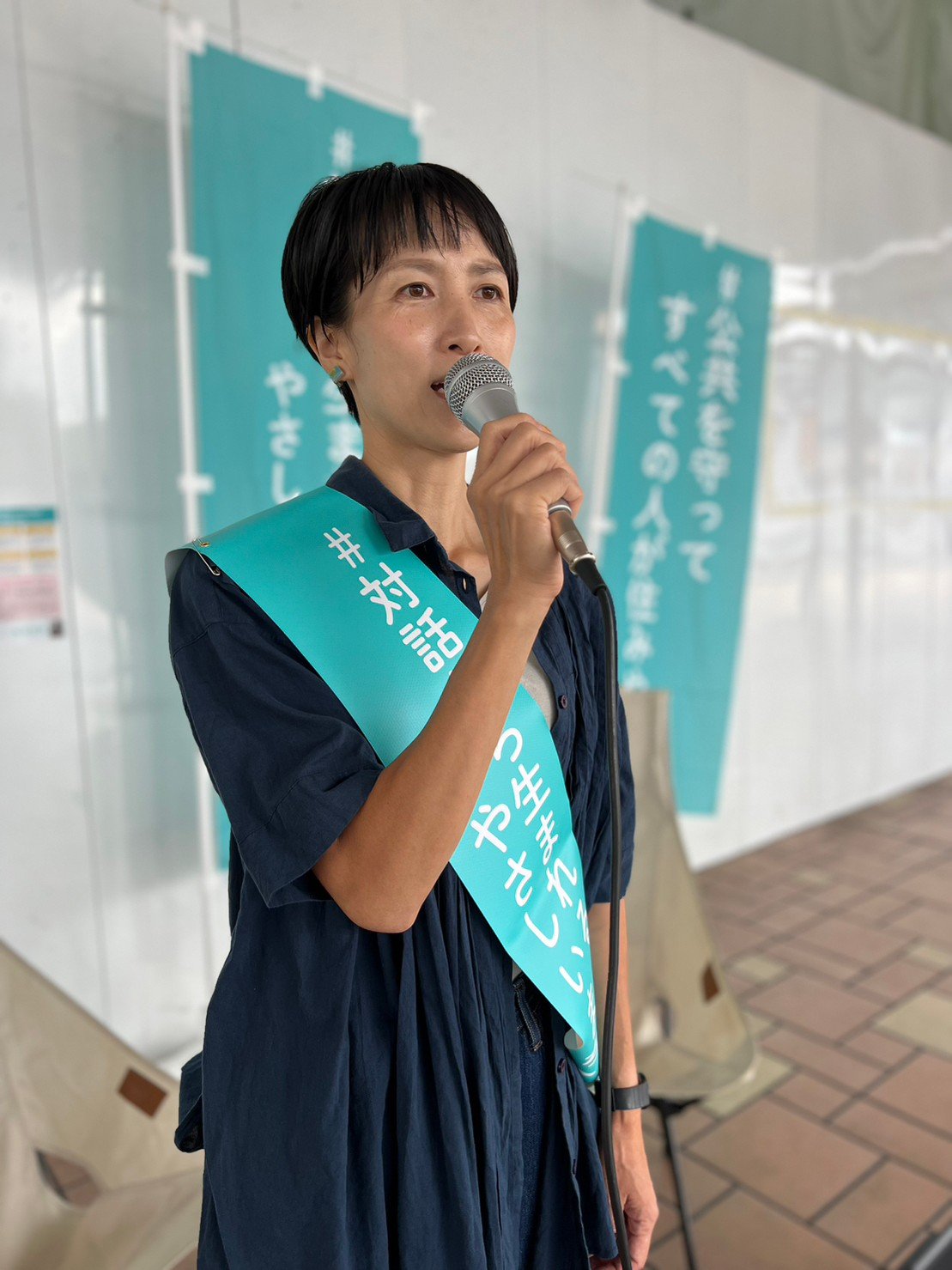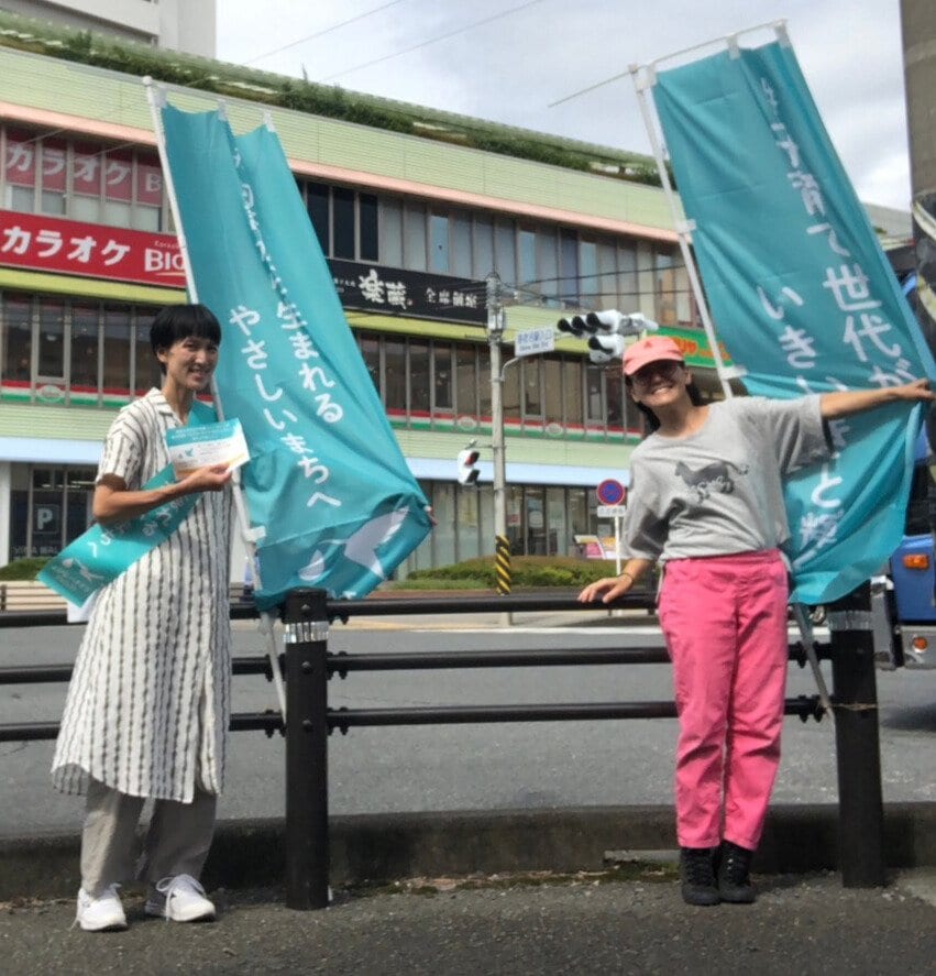 チラシを受け取ってくれたママさんが、後から話しかけてくれて、日常の困り事のお話をしてくださいました。公共施設附帯駐車場有料化も困るし、コミュニティバスの値上げも困る。車がないから移動が大変。選択的夫婦別姓を進めてほしい。ジェンダー平等も実現したい、などなど、たくさんの話題で盛り上がりました。