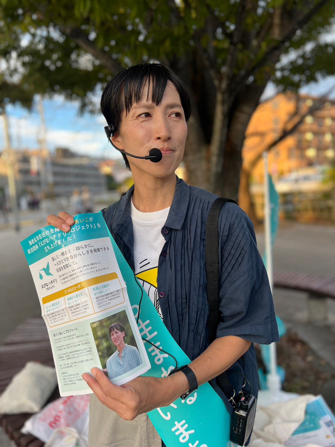 「自然と共生する、持続可能な海老名」でした。海老名駅周辺の過度な開発に反対し、自然を守って将来にわたって美しい海老名の姿を残すとともに、持続可能な社会を目指すことについてお話ししました。