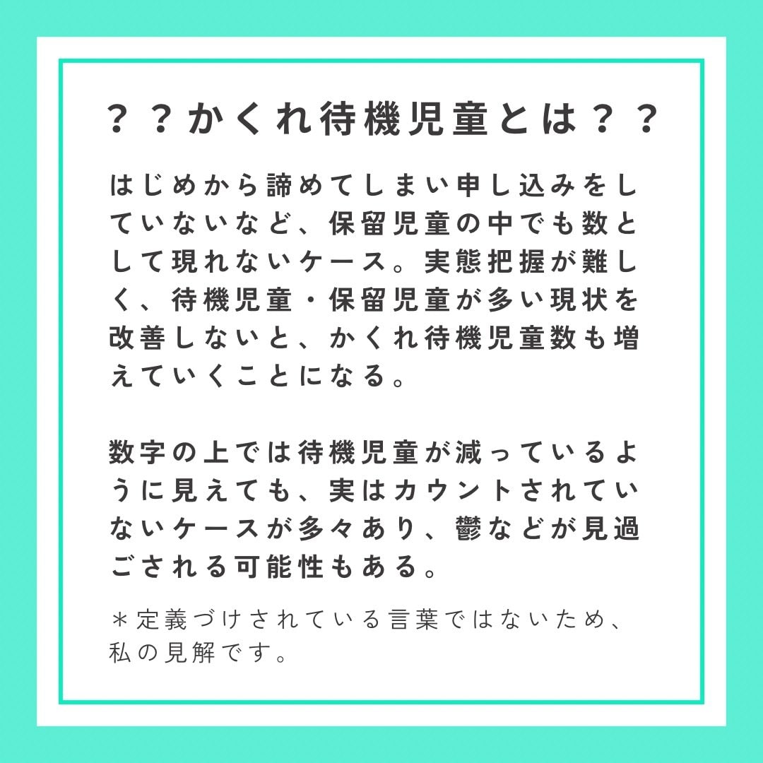 保育園に入れなくて仕事をやめざるを得ない、 保活が大変でゆっくり子育てできない、 保活に疲弊してうつ状態になってしまう、 友達がライバルになり人間関係がギスギスしてしまった、出産前から保育園のことを気にしなければならないなど、保育園環境が整っていないことで多くの方が 大変な思いをしています。